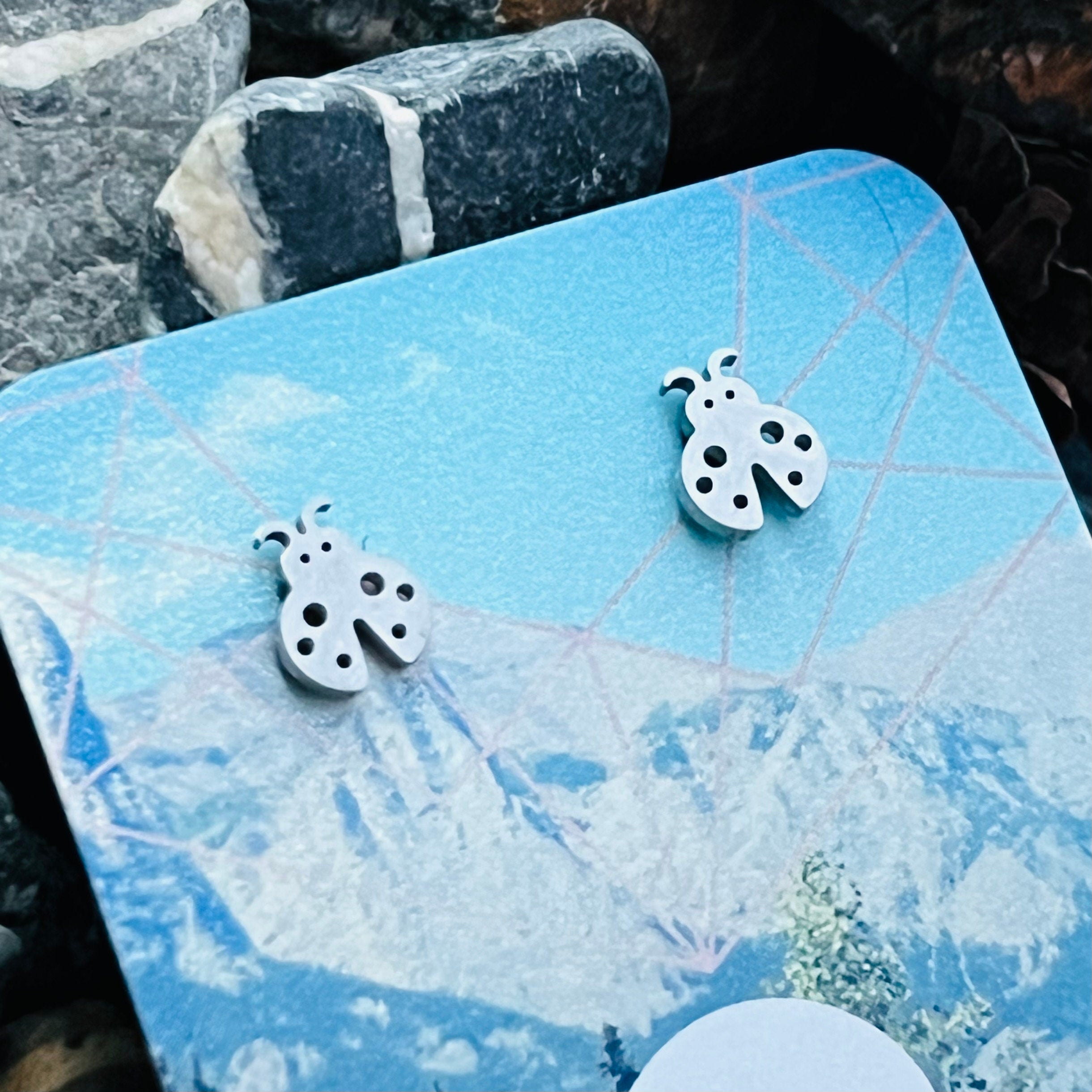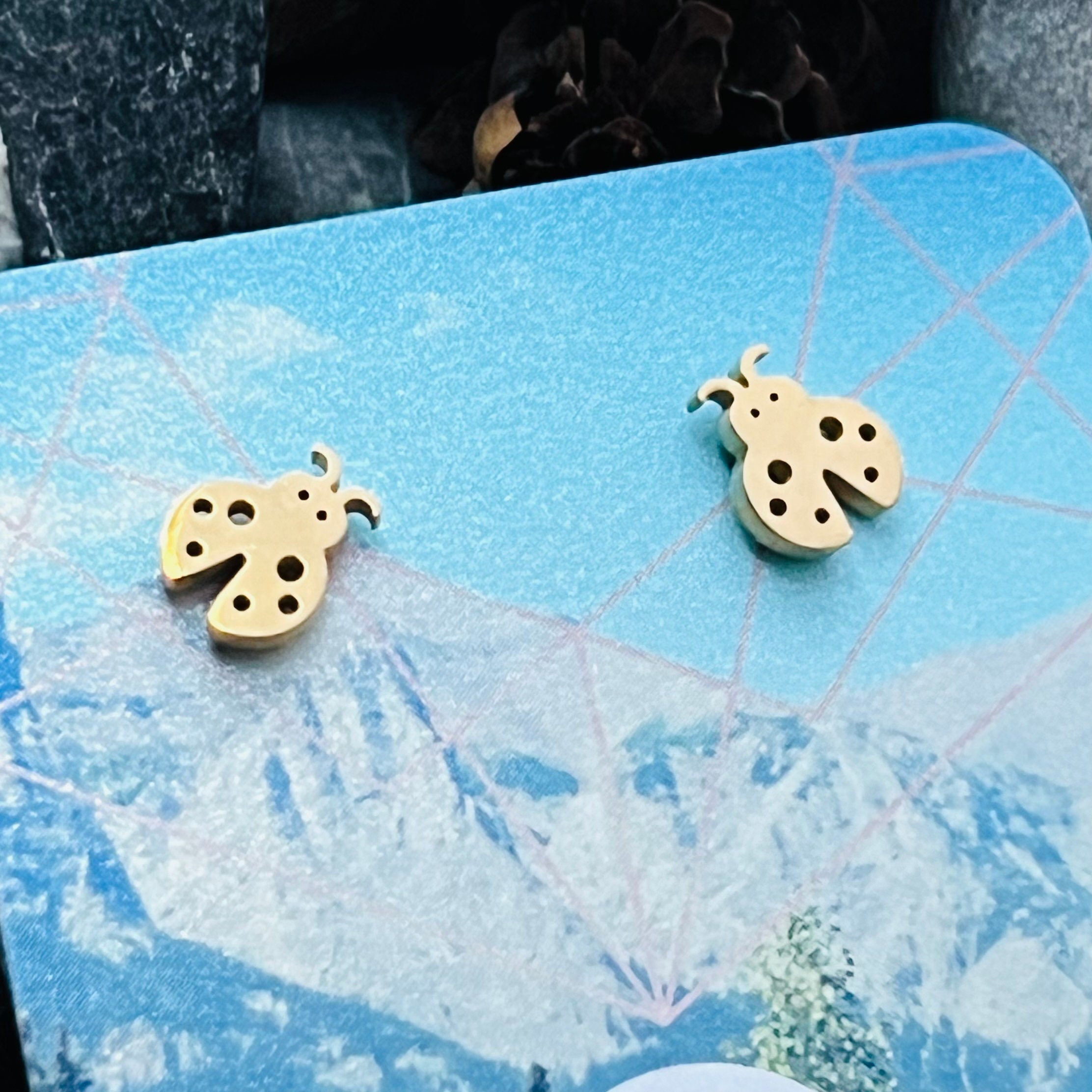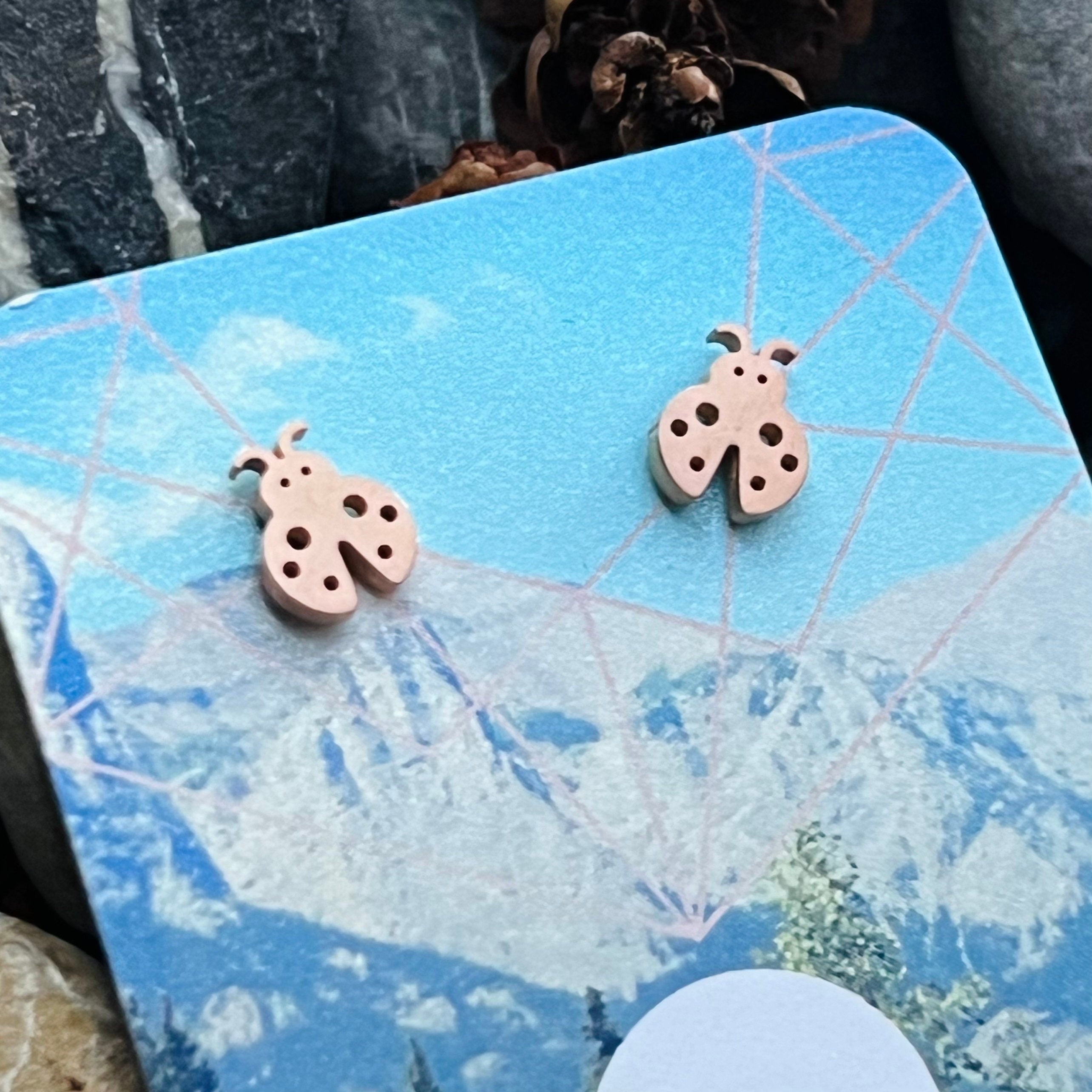 These amazing ladybug stud earrings are available in gold, rose gold, or silver. The earring, post, and back are all stainless steel. They are a good choice for everyday wear. They are non corrosive and non tarnish. They are also hypoallergenic and can be worn by most people.