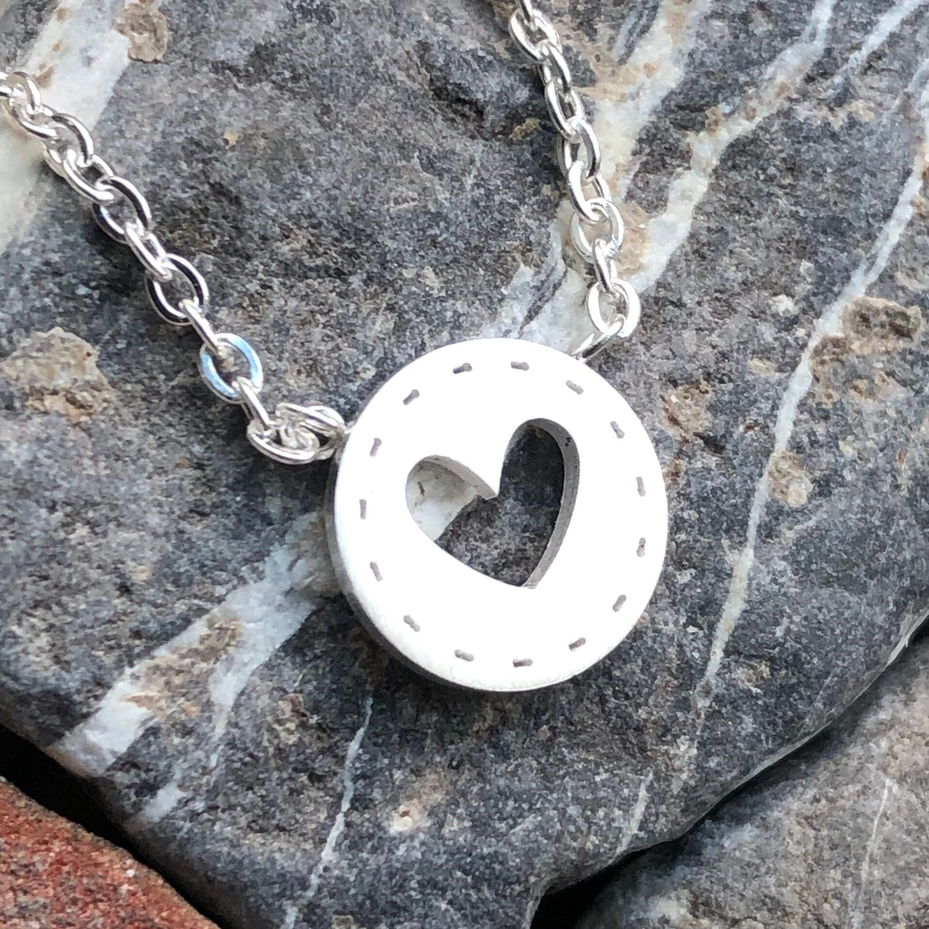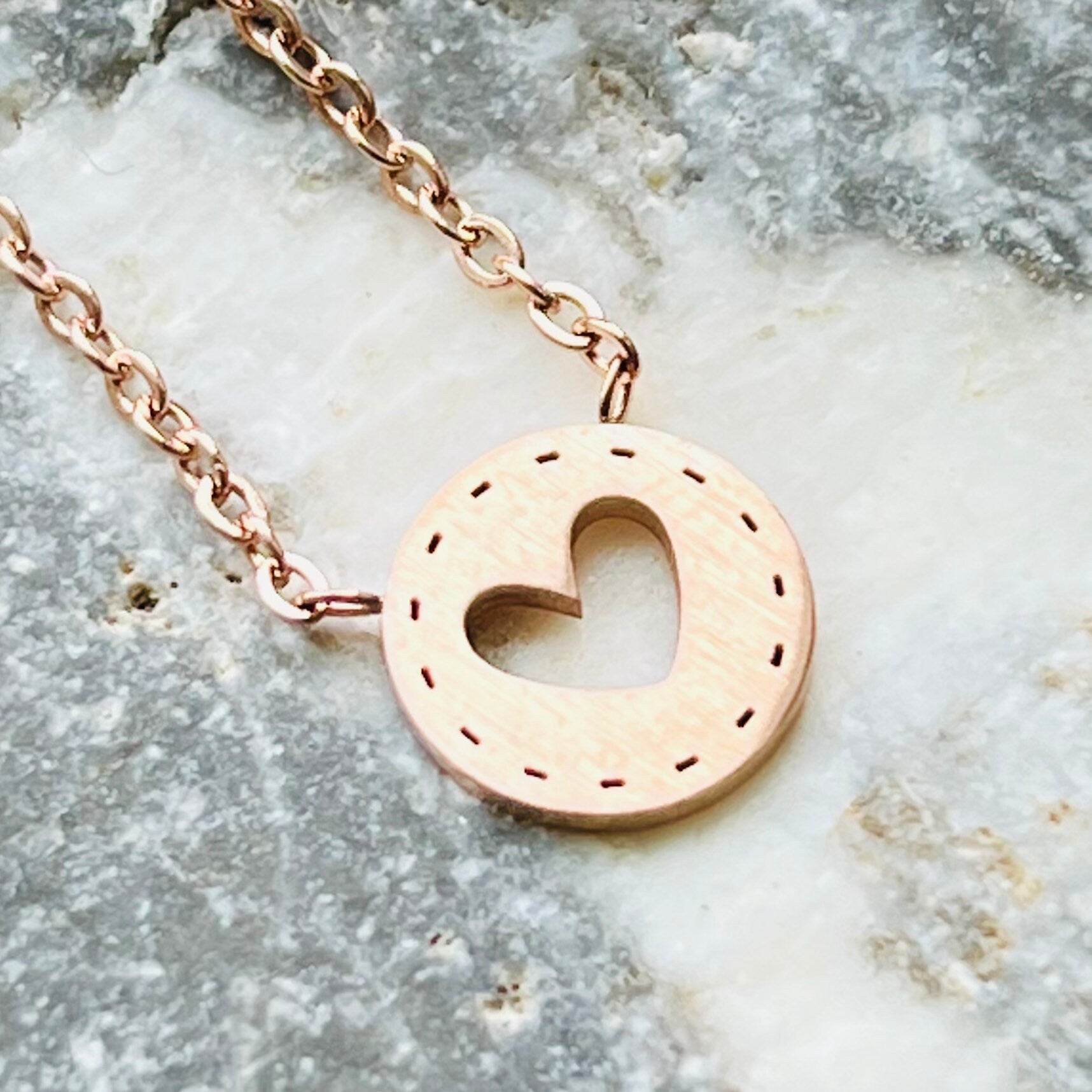 This stainless steel open heart necklace has an adjustable chain that can be worn from 15” choker length to 18” mid chest. All the parts are hypoallergenic and can be worn in the shower, hot tub, or even the ocean and will not corrode or tarnish. Fun gift! Silver or gold finish.