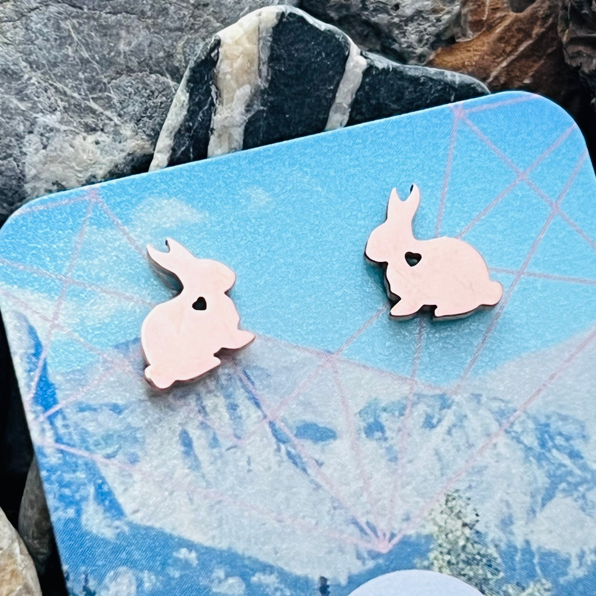 These are for a rabbit lover in your life. These are 12mm x 9mm. They are jewelry grade stainless steel with the colour anodized on top. They are non tarnish, non corrosive, no fading and can be worn in water, whether shower, hot tub, pool, or ocean. They are hypoallergenic and even non allergenic for most people. They contain no lead or nickel (the most common allergen). They have a butterfly back. This lovely bunny has a open heart and is ready to be part of your everyday life.