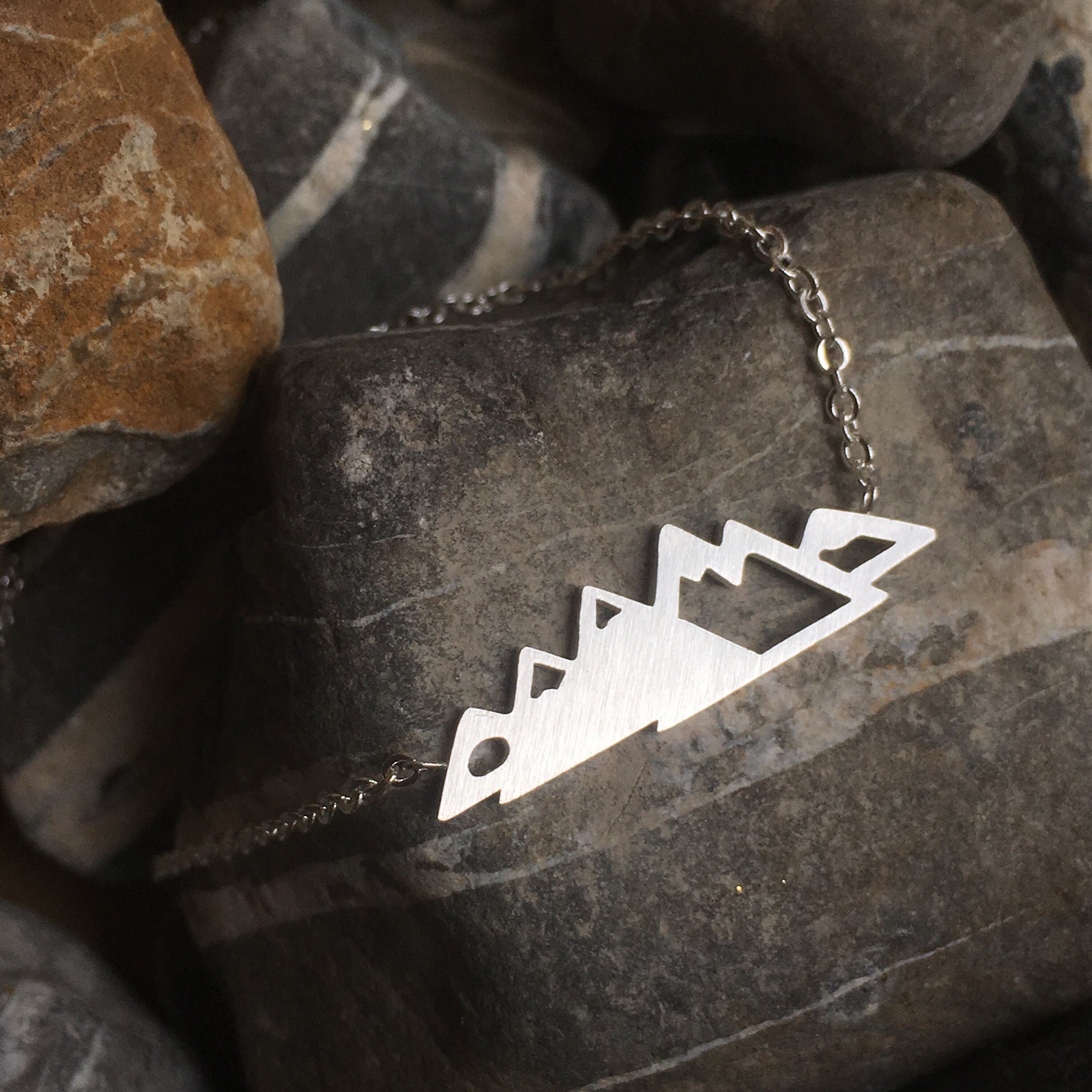 This lovely shiny stainless steel mountain necklace features a beautiful openwork design. It is available in gold or silver electroplated finish. It is a good choice for everyday wear. It is non corrosive and non tarnish so you can shower wearing it. It is also hypoallergenic and can be worn by most people. The strong chain makes it a good choice for active lifestyles. This pendant is 1” wide with a stainless steel chain that adjusts from 15”-18”.