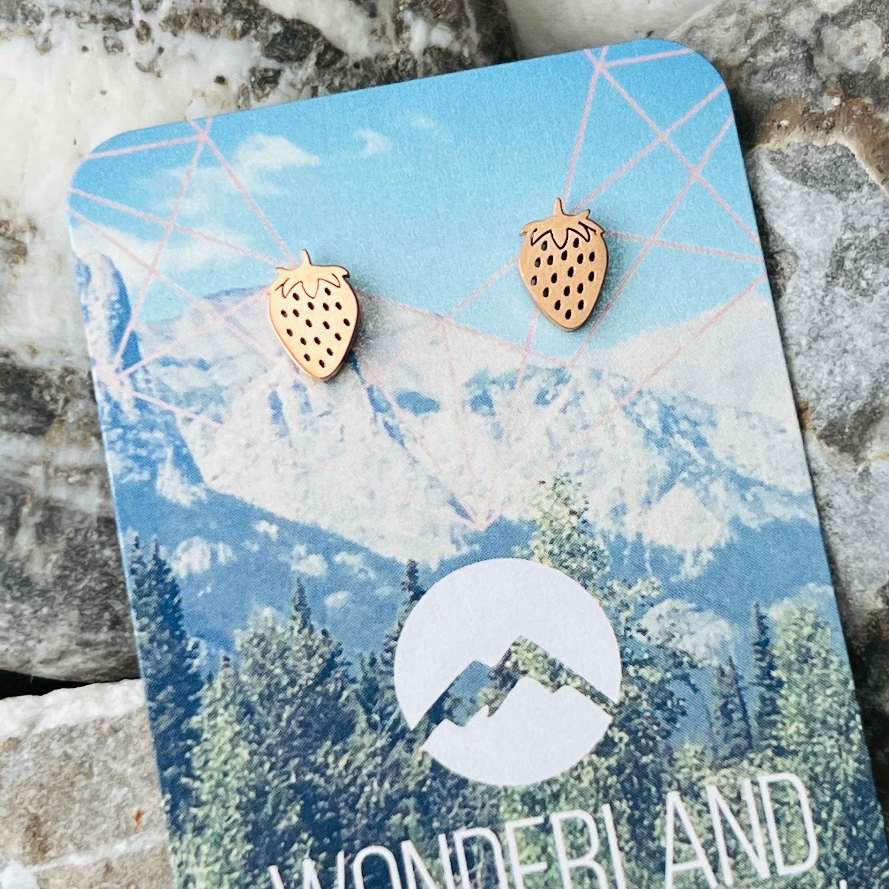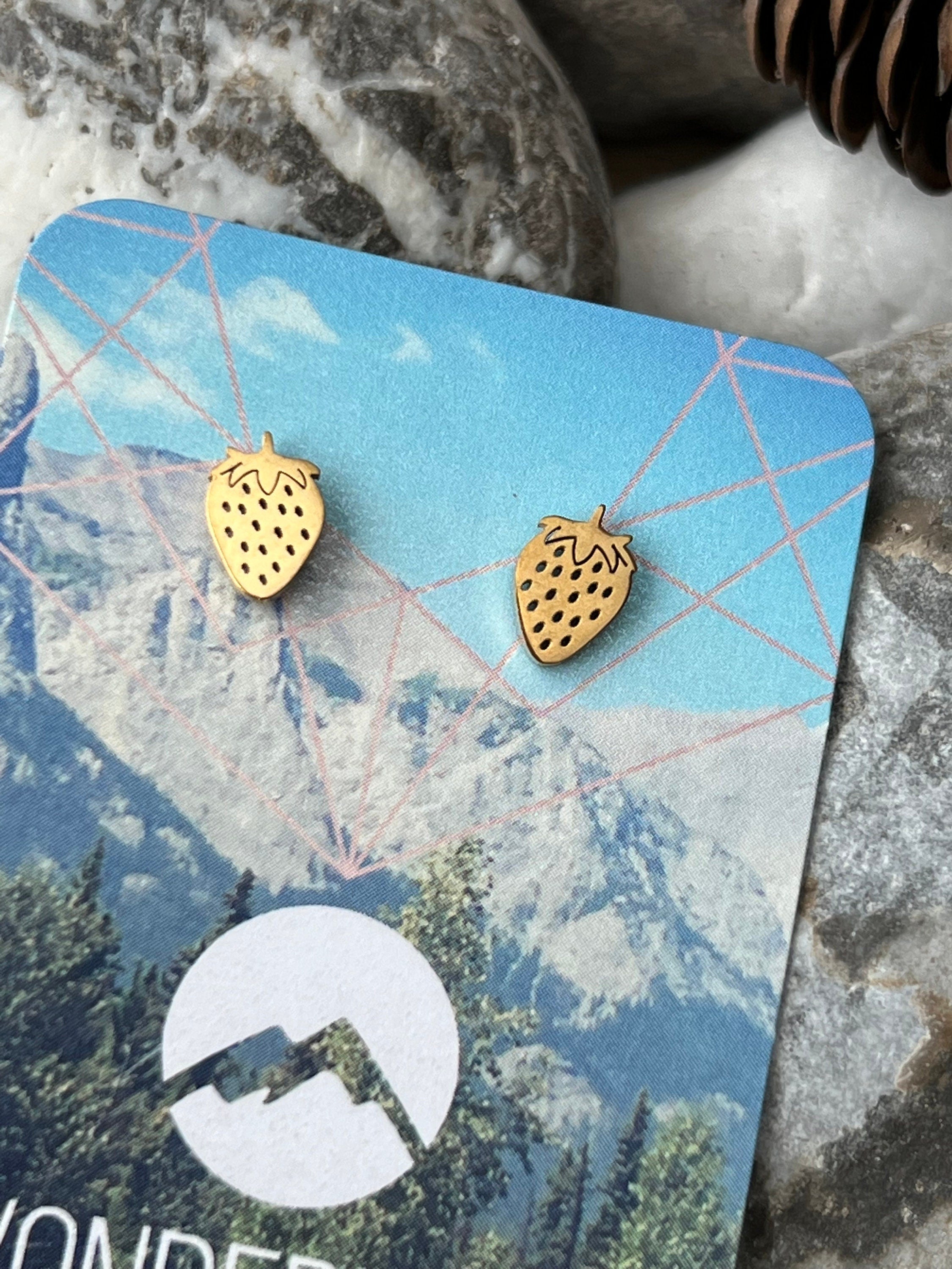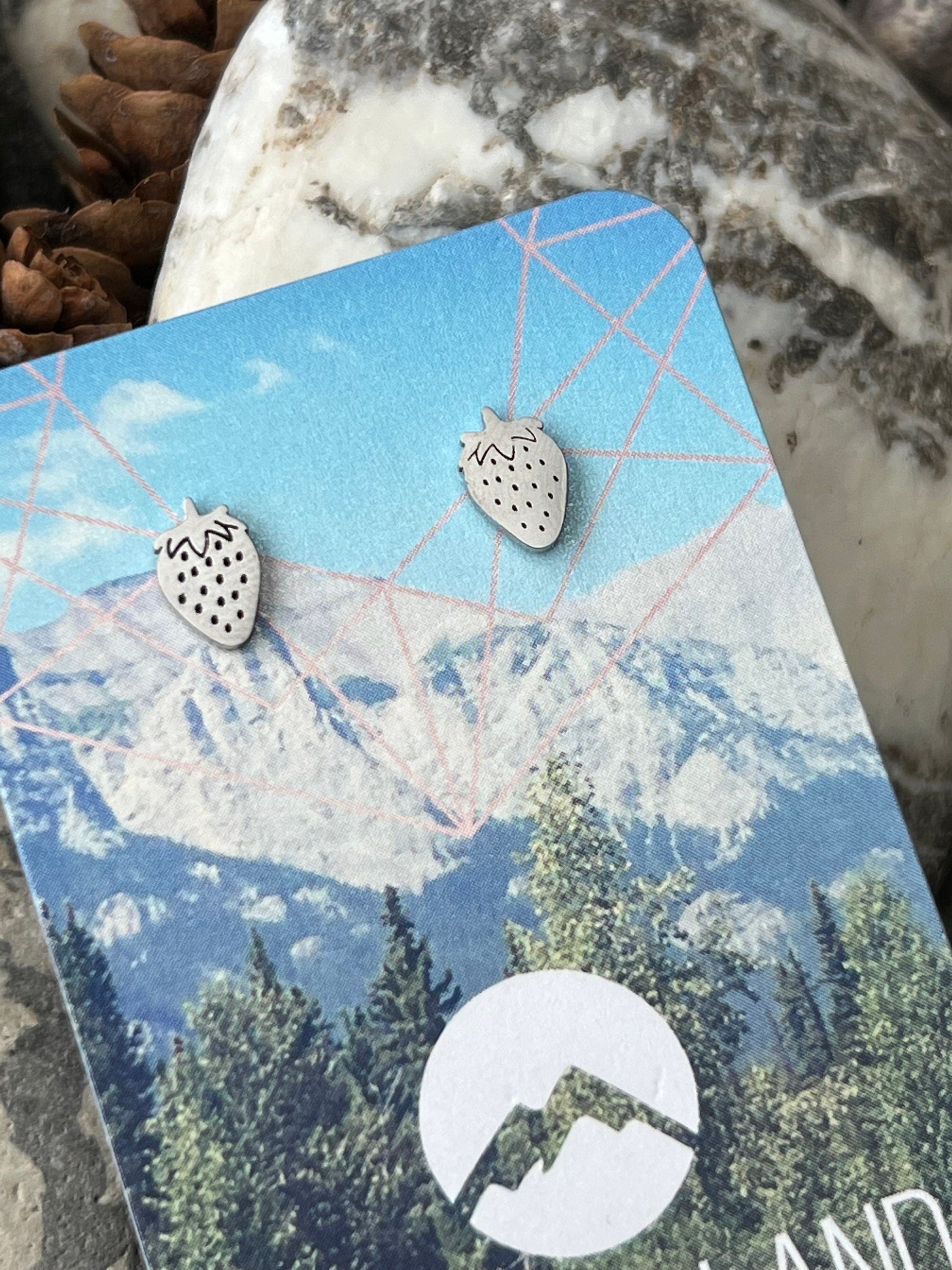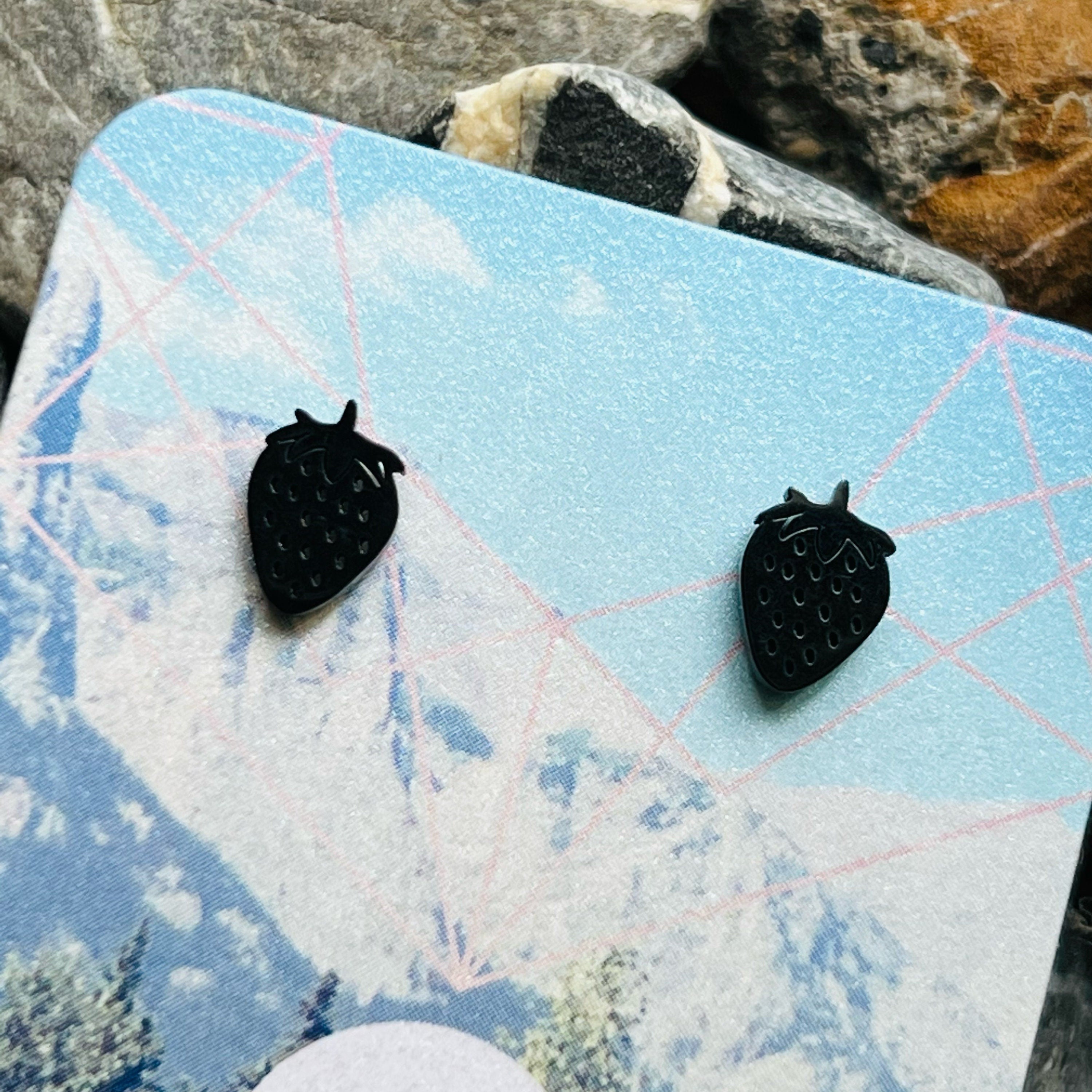 These cute strawberry stud earrings are available in black, gold, rose gold or silver. The earring, post, and back see all stainless steel. They are a good choice for everyday wear. They are non corrosive and non tarnish. They are also hypoallergenic and can be worn by most people.