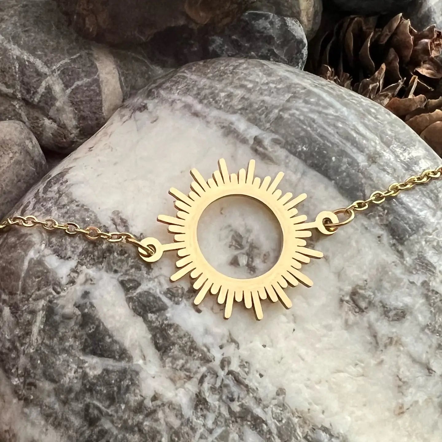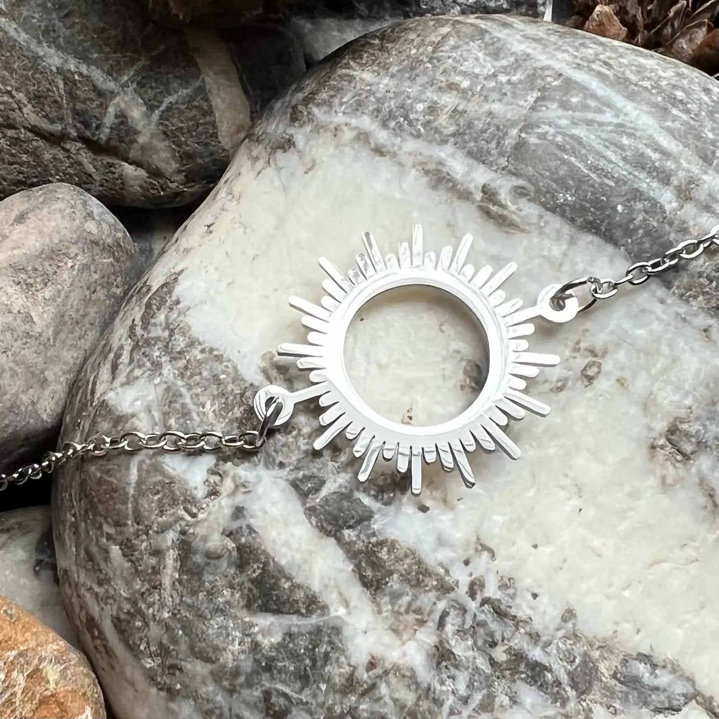 This beautiful representation of the sun is ready to light up your day! A solid stainless steel anklet is a good choice for everyday wear. It makes a perfect gift for yourself or a friend.