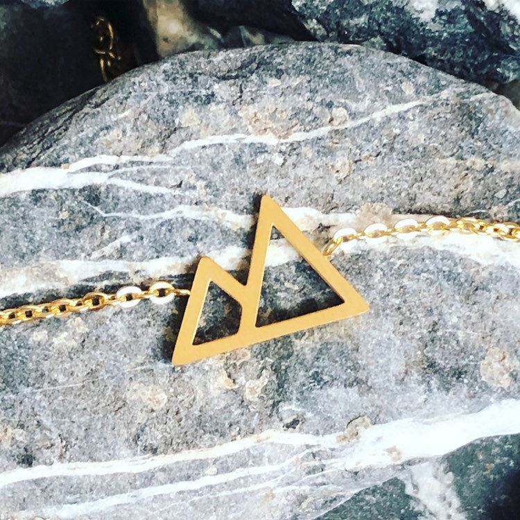 Stainless steel adjustable double peak mountain bracelet. This bracelet is fully jewelry grade stainless steel so it will not tarnish, corrode, or need to be polished. It can be worn everyday in the shower, tub, hot tub, pool, or ocean. have these in silver and gold