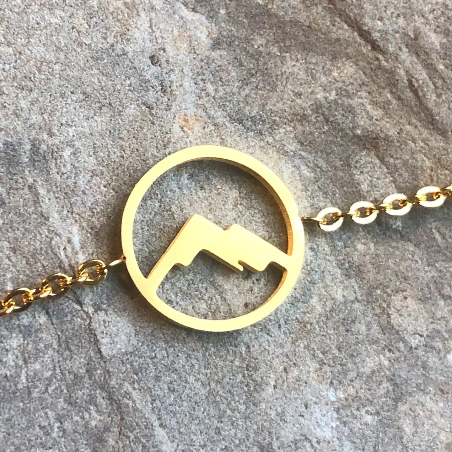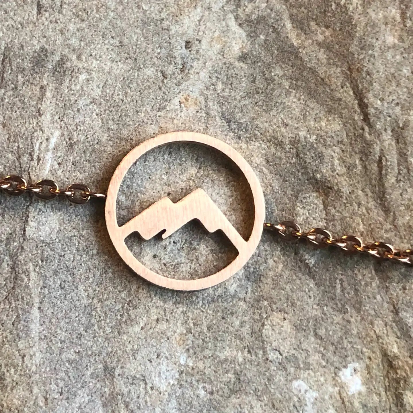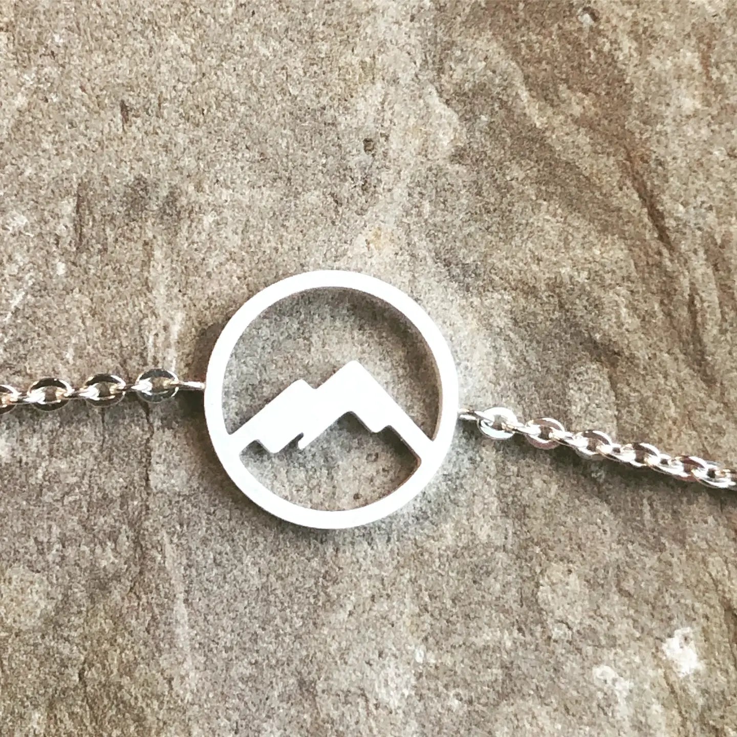 This lovely shiny round stainless steel mountain bracelet features a beautiful openwork design. It is a good choice for everyday wear.