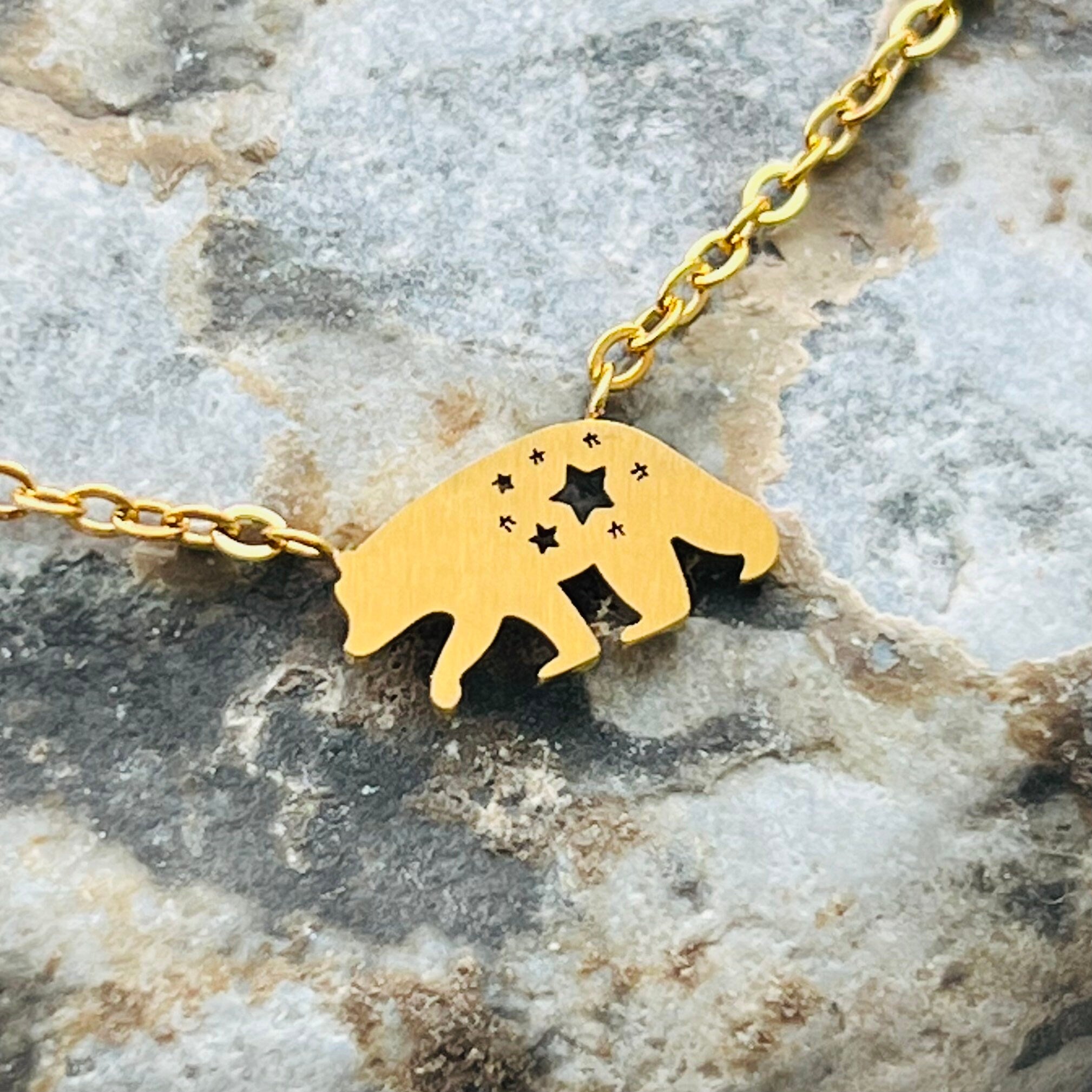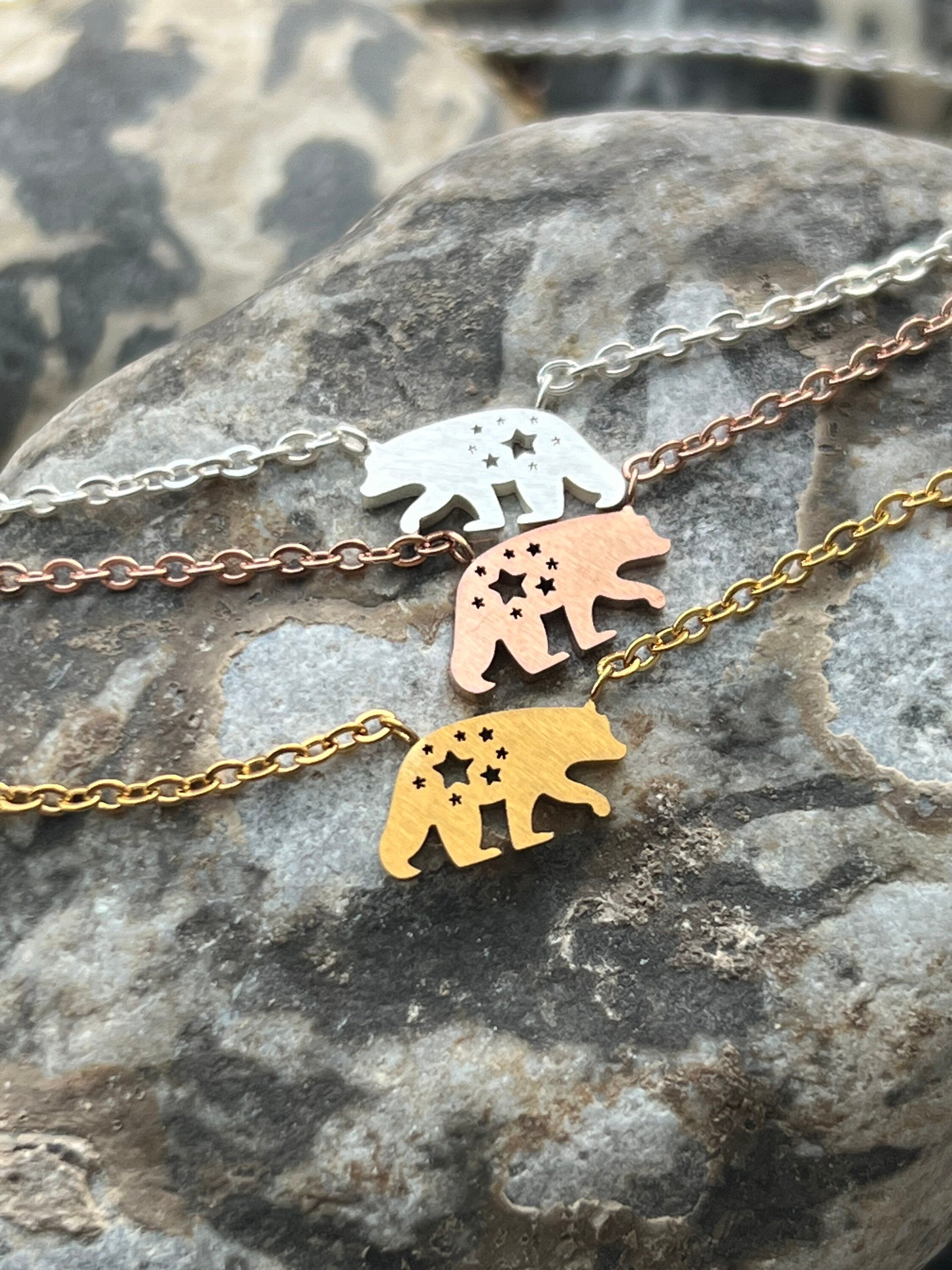 This is hypo allergenic and can be worn directly on the skin. It is a good everyday necklace that can go in water and doesn’t tarnish, rust, or corrode. It is available in anodized shiny silver, gold, or rose gold.