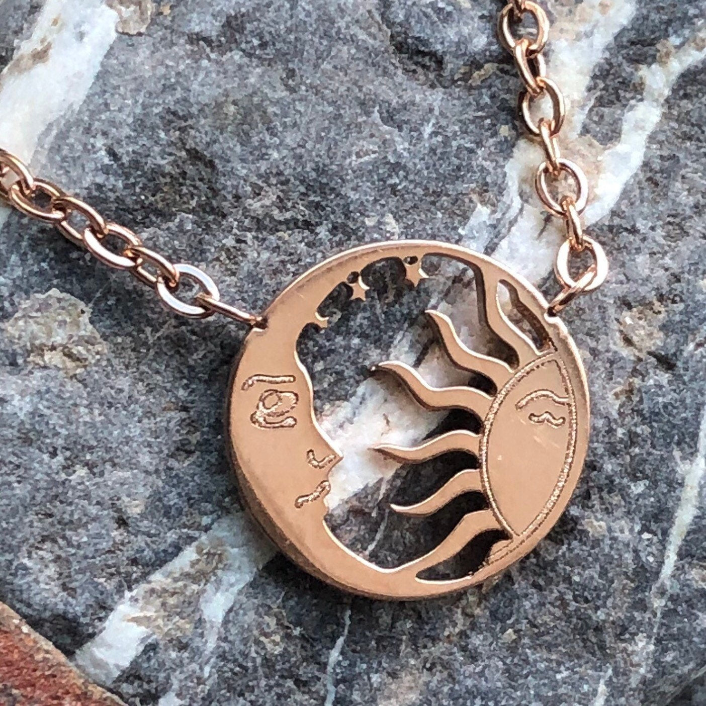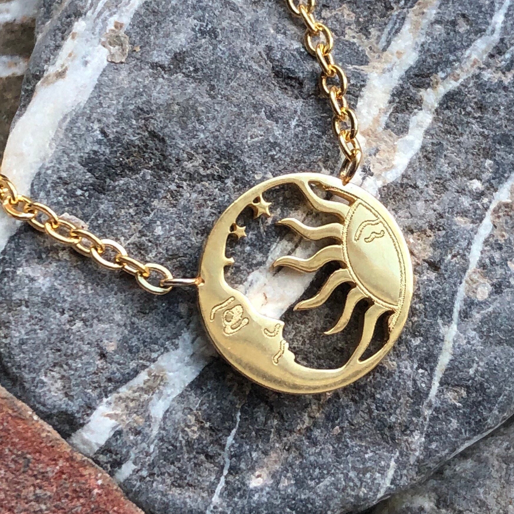 Great gift for anyone you want to give the sun moon and stars to 💗 My jewelry is hypoallergenic, non tarnish, non corrosive, and can go in the shower, hot tub, or ocean without problems. This can be worn from 15” choker length to 18” mid chest length thanks to an adjustable chain that lets you decide. These necklaces are perfect for everyday wearing and are available in silver, gold, or rose gold.