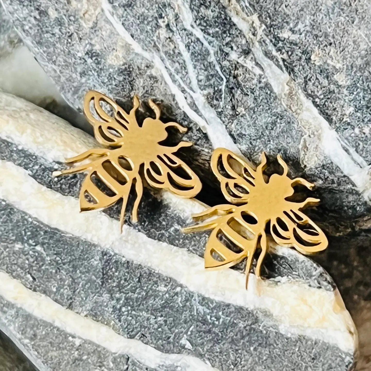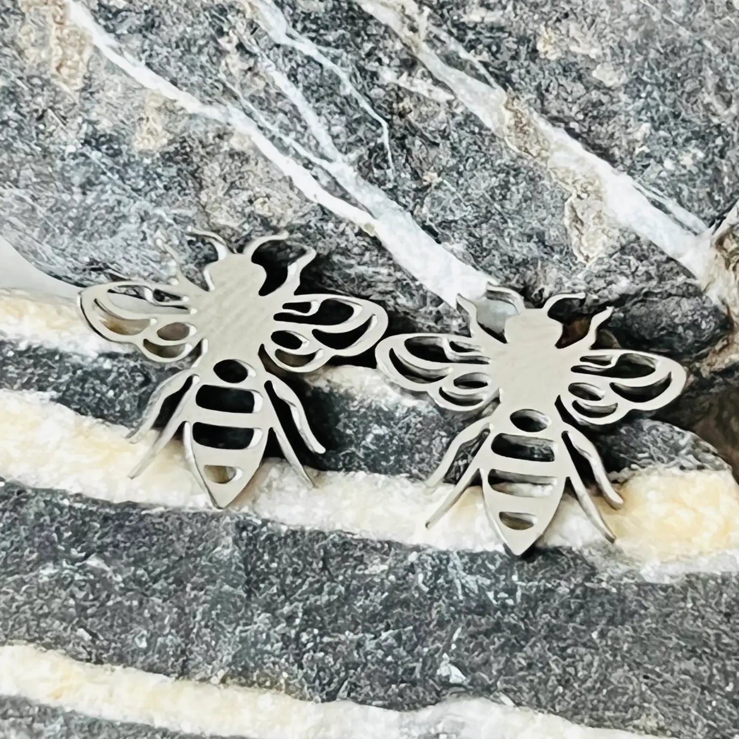 These cute bee stud earrings are a good choice for everyday wear. The earring, post, and back see all stainless steel. They are non corrosive and non tarnish. They are also hypoallergenic and can be worn by most people.