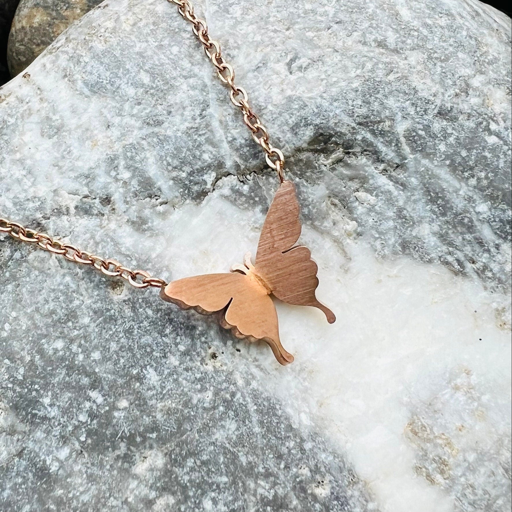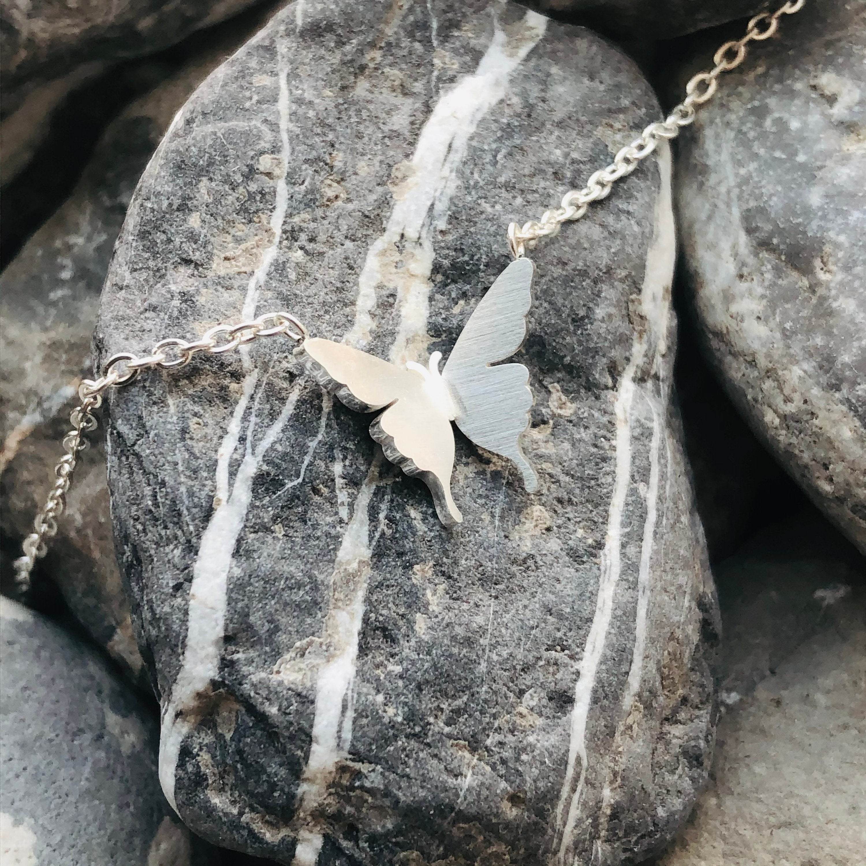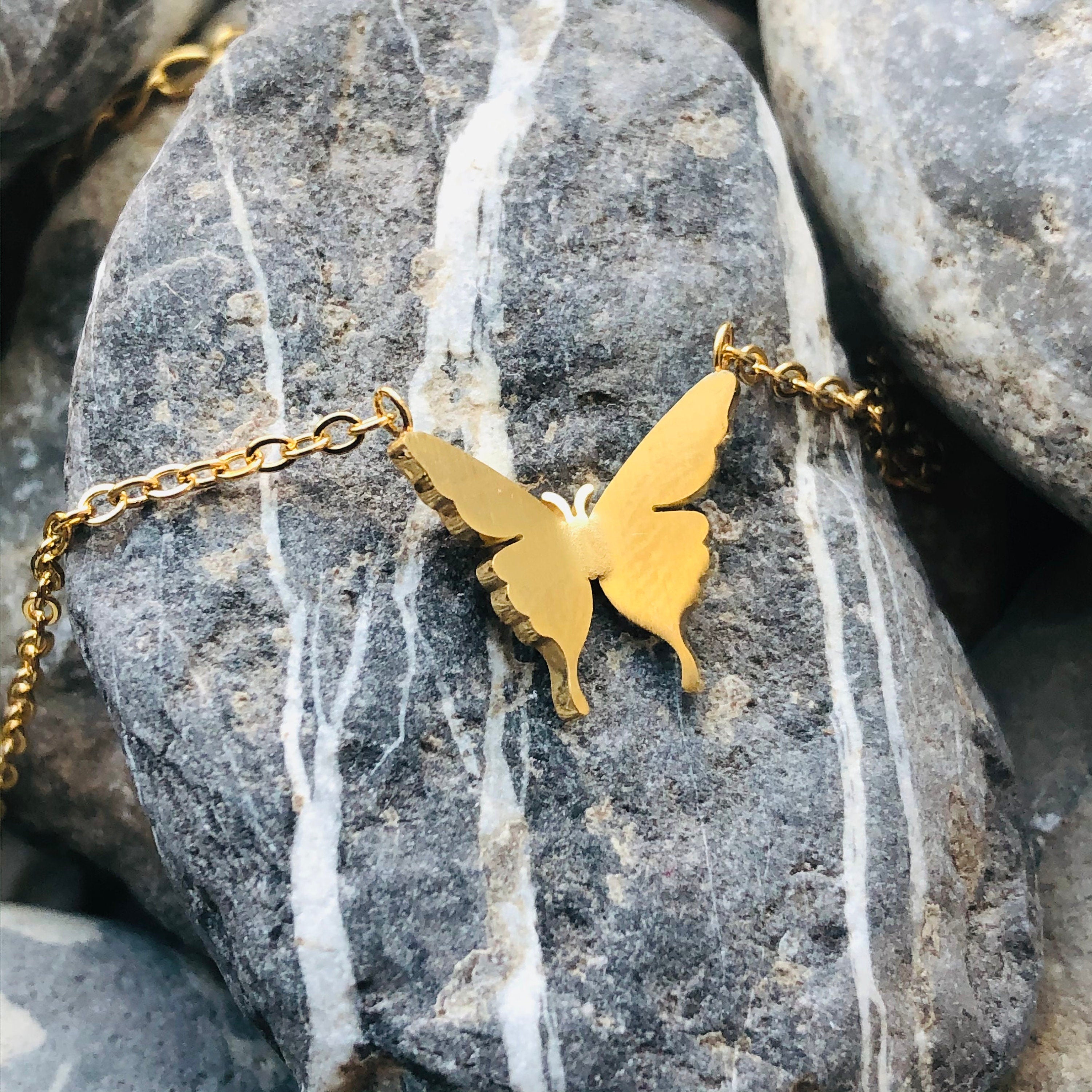 The dainty butterfly pendant measures 11mm x 11mm.