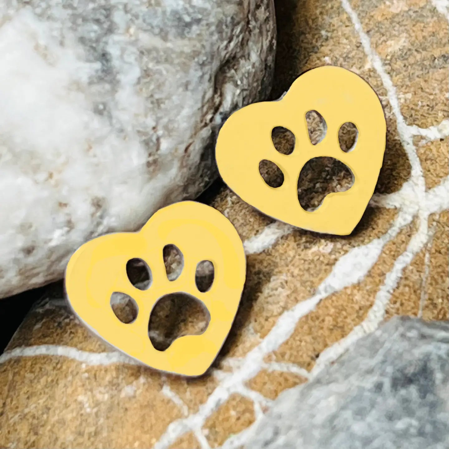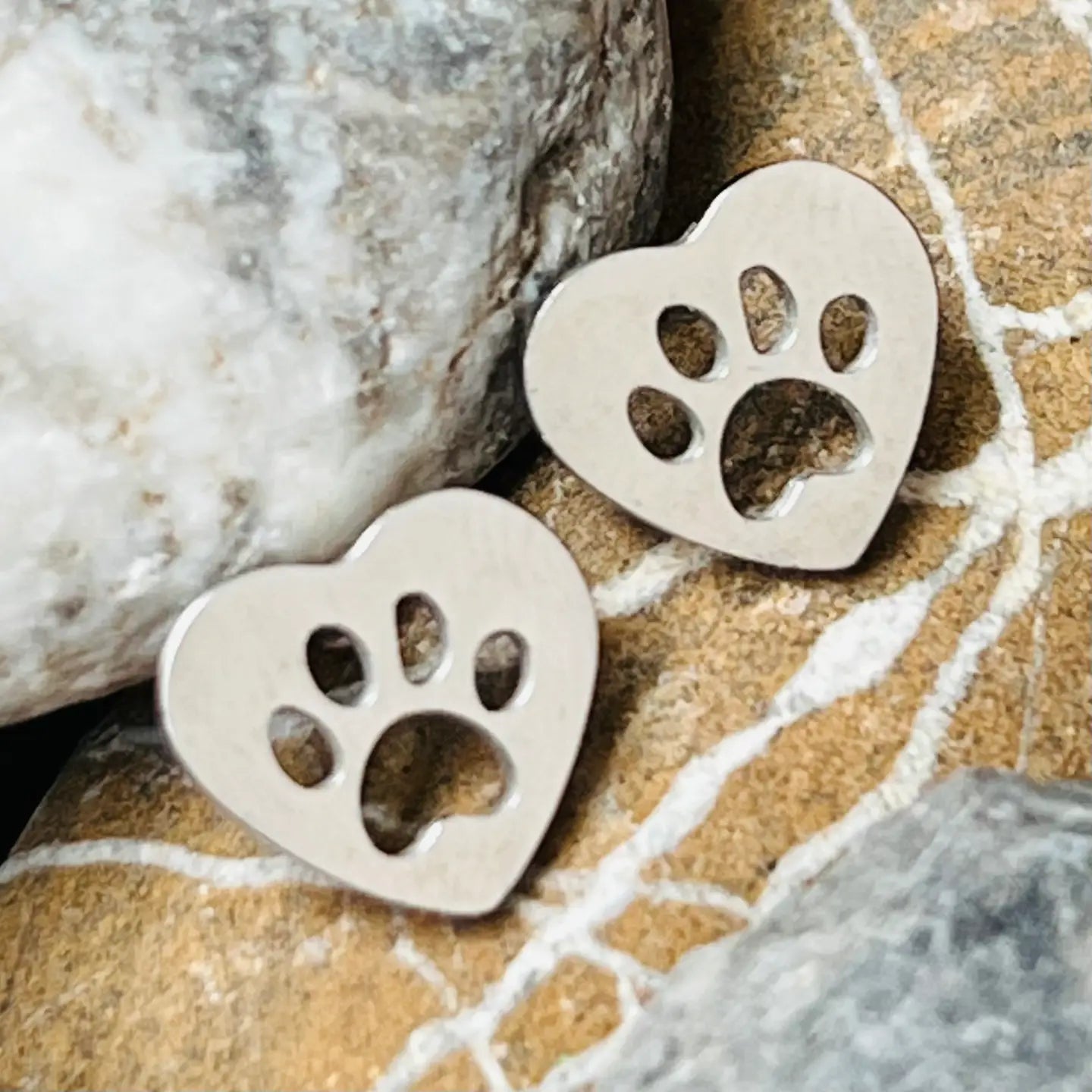 These lovely shiny stainless steel paw print studs feature a beautiful heart design. They are a good choice for everyday wear. They are non corrosive and non tarnish. They are also hypoallergenic and can be worn by most people. It makes a perfect gift for yourself or a friend.