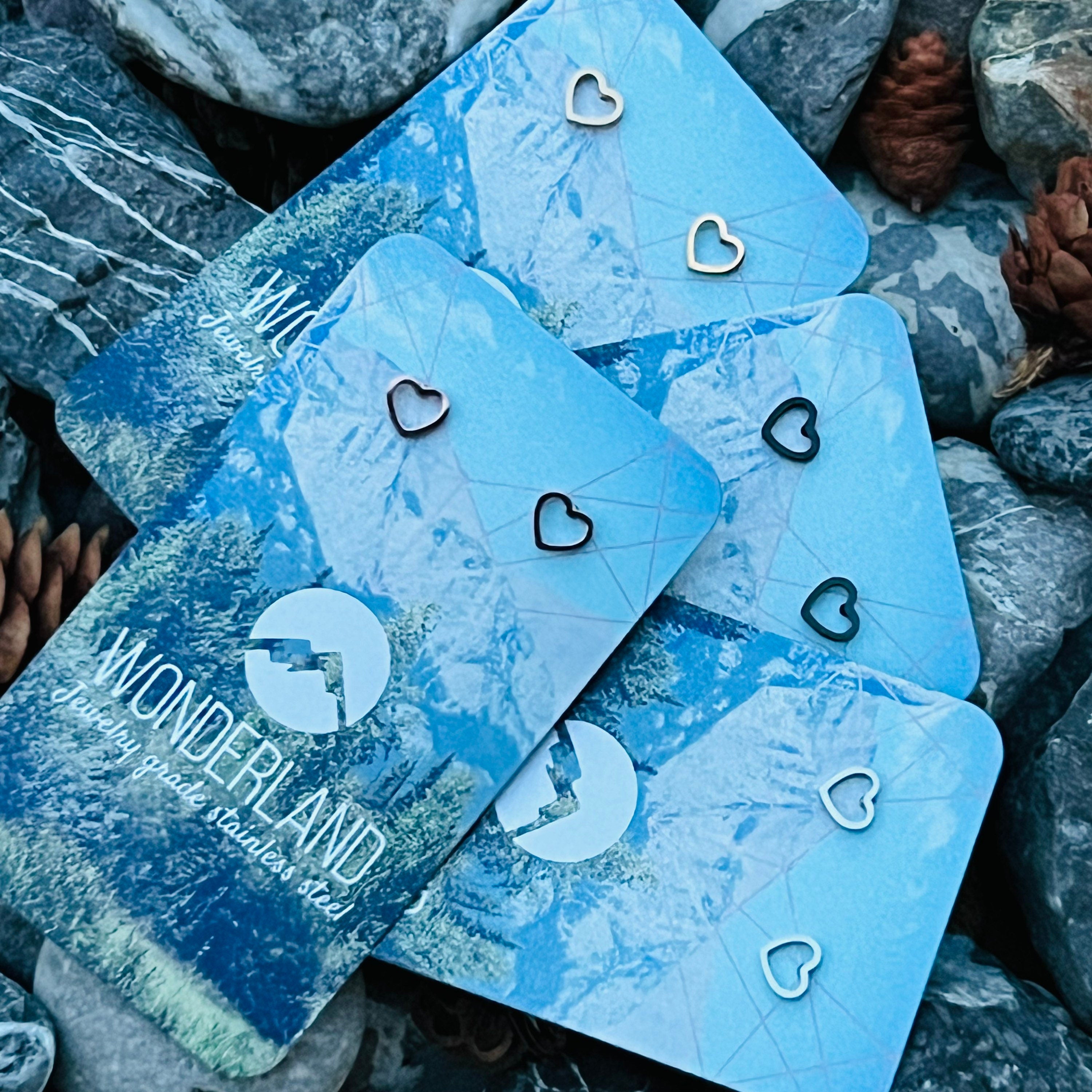 They are unisex for children or adults. They are jewelry grade stainless steel with the colour anodized on top. They are non tarnish, non corrosive, no fading and can be worn in water, whether shower, hot tub, pool, or ocean. They are hypoallergenic and even non allergenic for most people. They contain no lead or nickel (the most common allergen). They have a butterfly back. Suitable for so many occasions where you want to spread the love, from birthdays to anniversaries, Valentine’s Day to graduations.