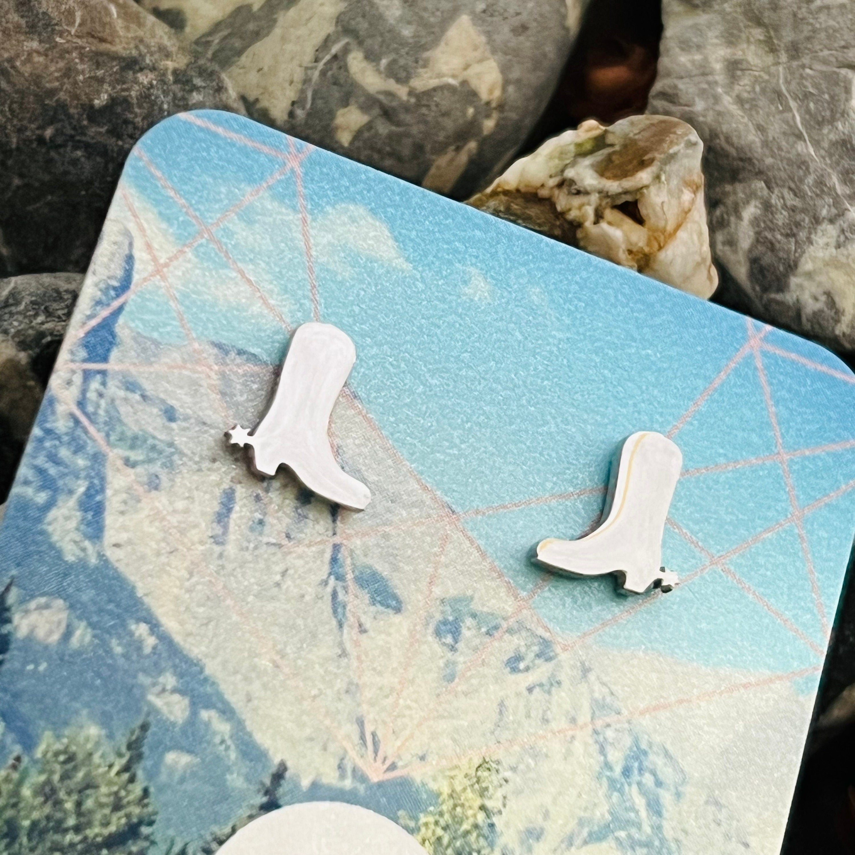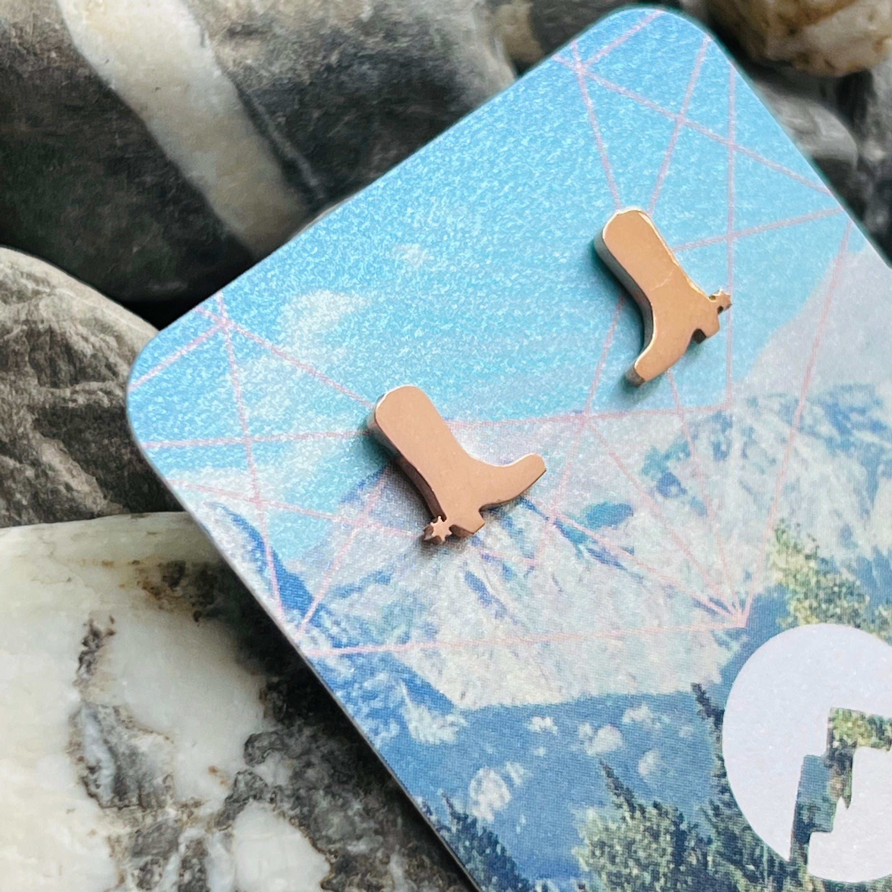They are jewelry grade stainless steel with the colour anodized on top. They are non tarnish, non corrosive, no fading and can be worn in water, whether shower, hot tub, pool, or ocean. They are hypoallergenic and even non allergenic for most people. They contain no lead or nickel (the most common allergen). They have a butterfly back.