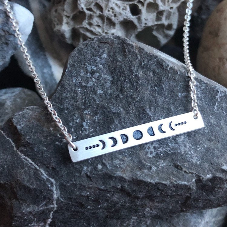 This stainless steel pendant is 4mmx32mm wide with a stainless steel chain that adjusts from 15”-18”. This is hypo allergenic and can be worn directly on the skin. It is a good everyday necklace that can go in water and doesn’t tarnish, rust, or corrode. It is available in electroplated shiny silver, gold, or rose gold.