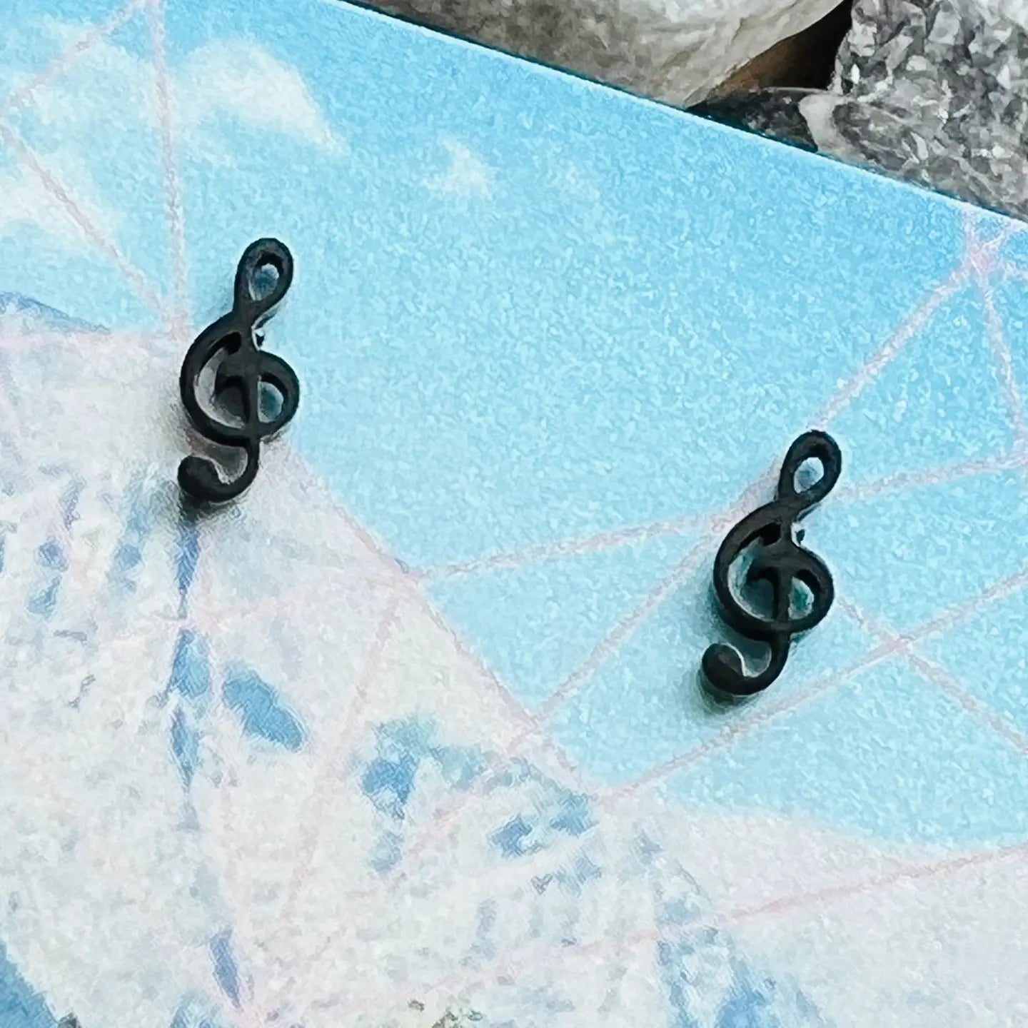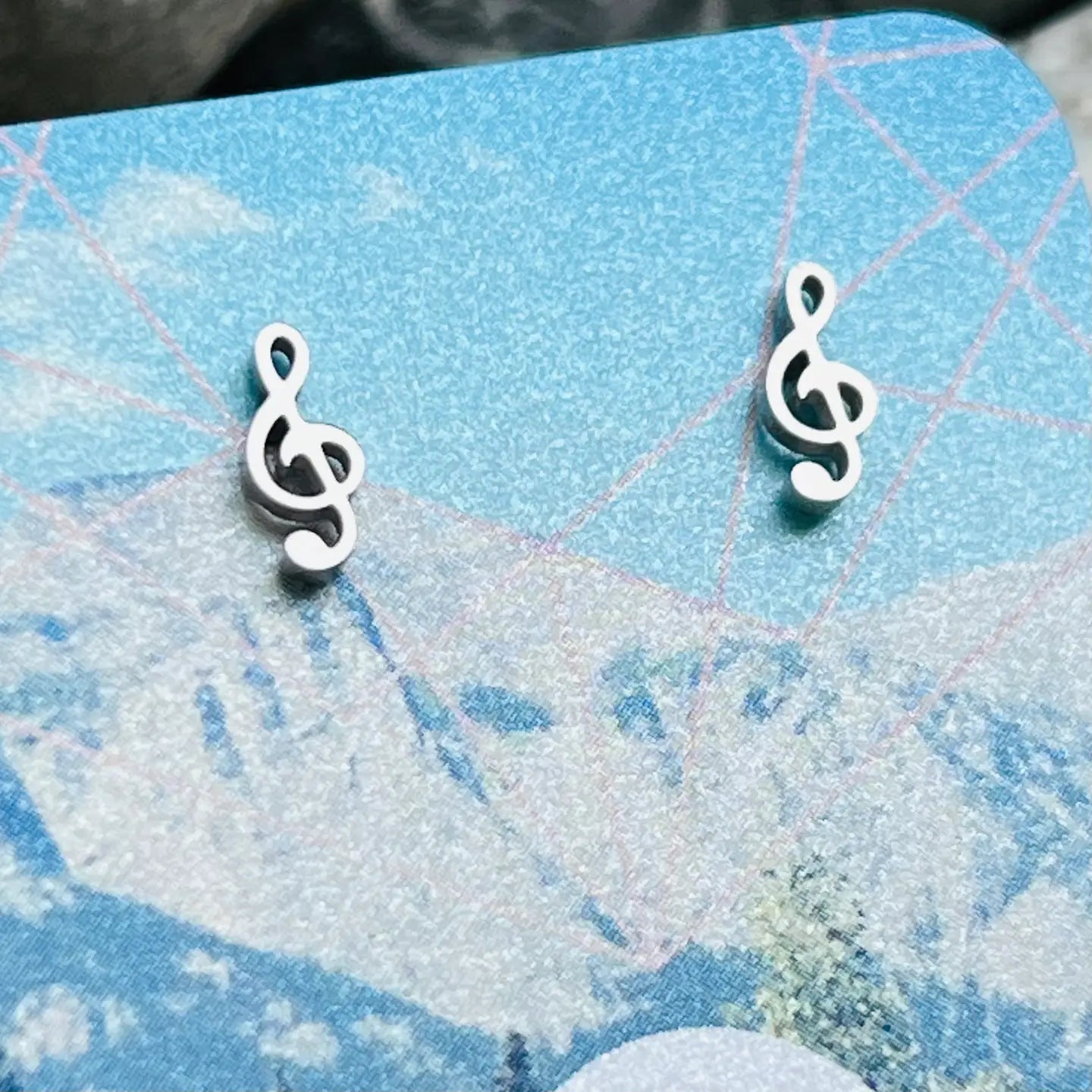 These tiny treble clefs are all jewelry grade stainless steel, which is the same material a person is initially pierced with. It is non allergenic for most people. These earrings can go in water (pool, hot tub, shower, bath, ocean) and won’t tarnish or corrode. Great gift! 💗