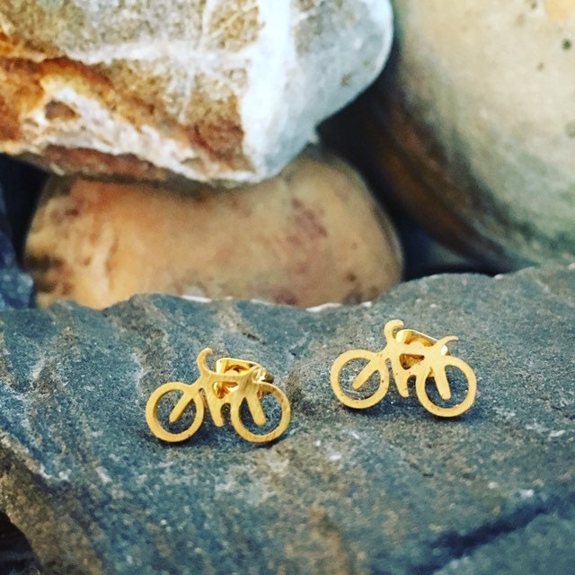 These adorable little bicycle studs are perfect for everyday. Whether for adventuring on a ride or for gift giving, the size is perfect. Made from stainless steel they are hypoallergenic and can be worn by most people and children. These lovely little earrings are shiny, non tarnish and non rusting. They are available in silver or gold tone. The bikes are approximately 5mm x 10mm each.